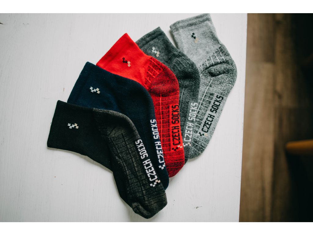 Funkční bavlněné ponožky s důrazem na komfort a dlouho životnost. Zesílené chodidlo s příměsí polypropylenu účinně chrání proti oděru a zvyšuje odolnost při každodenním nošení i sportovních aktivitách. Masážní struktura chodidla s froté zónami. Bezešvá špice zabraňuje otlakům a volný, neškrtící lem zaručuje maximální pohodlí.
