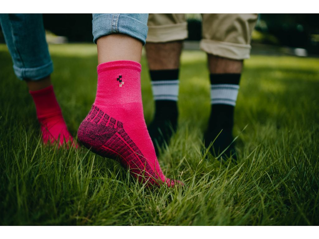 Funkční bavlněné ponožky s důrazem na komfort a dlouho životnost. Zesílené chodidlo s příměsí polypropylenu účinně chrání proti oděru a zvyšuje odolnost při každodenním nošení i sportovních aktivitách. Masážní struktura chodidla s froté zónami. Bezešvá špice zabraňuje otlakům a volný, neškrtící lem zaručuje maximální pohodlí.