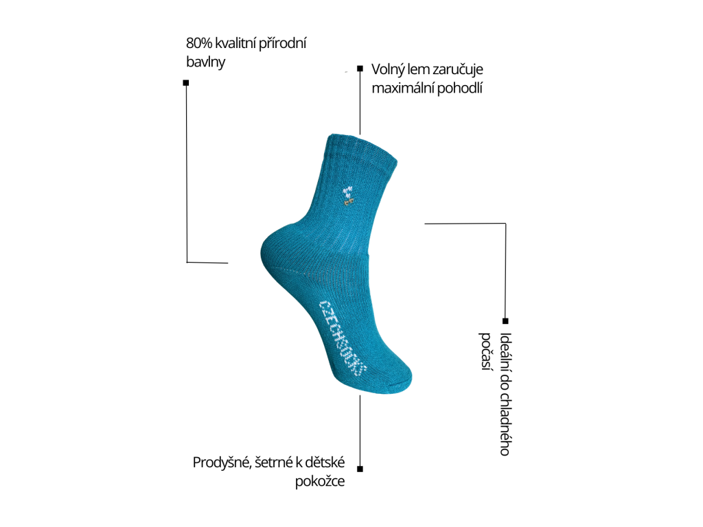 Objevte vysoce kvalitní dětské ponožky z přírodní bavlny, které spojují pohodlí, funkčnost a poctivou českou výrobu. Tyto vysoké ponožky obsahují 80% bavlny, díky čemuž jsou mimořádně příjemné na dotek, prodyšné a šetrné k dětské pokožce. Ideální volba pro chladnější dny. Mají vysoký střih pro lepší ochranu dětských nohou. Dopřejte dětem maximální komfort a kvalitu, na kterou se můžete spolehnout.